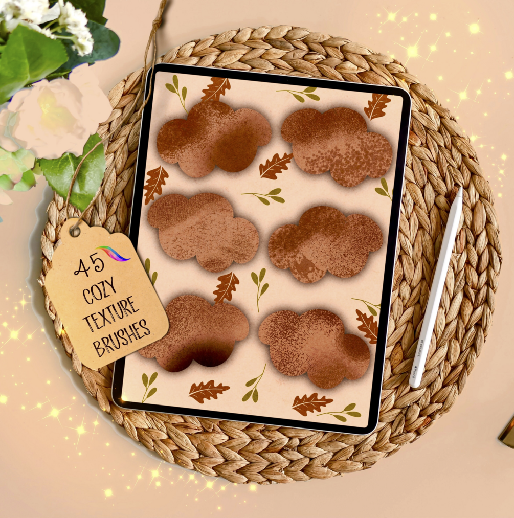 Introducing the Procreate COZY TEXTURE BRUSHSET for painting FANTASTIC CANVAS OR MAKE YOUR STICKERS 😍. Big Pack of gorgeous brushes STAMPS for more possibilities and options 💖