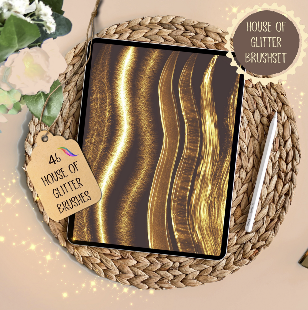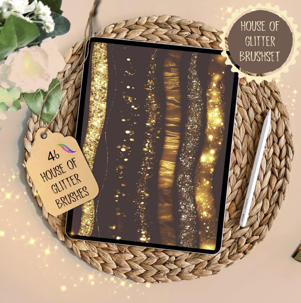 Introducing the Procreate HOUSE OF GLITTER Brushset ⭐️⭐️. Big Pack of gorgeous and shiny brushes for more possibilities and options 💖