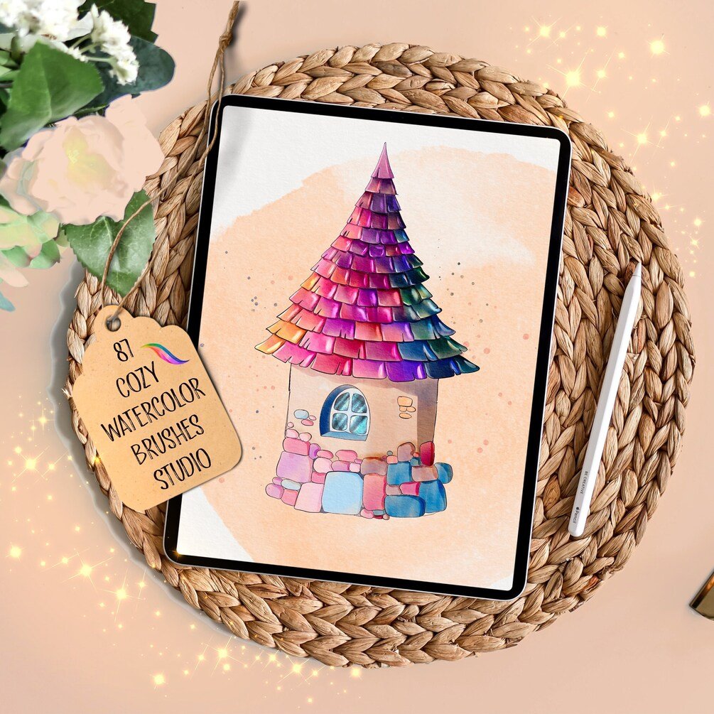 Introducing the Procreate COZY WATERCOLOR STUDIO BRUSHSET for painting ๐. Pack of gorgeous brushes for more possibilities and options ๐